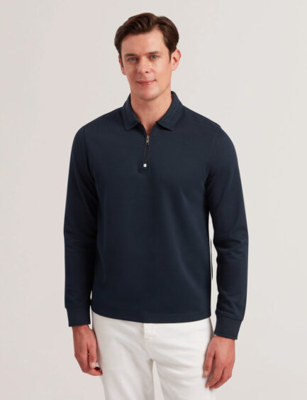 INGMAR – Polo majica dugih rukava s patentnim zatvaračem od mješavine pamuka