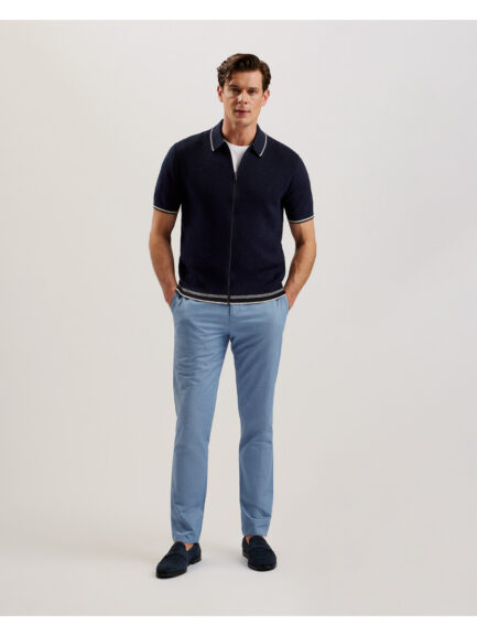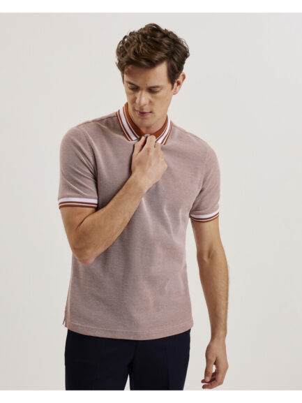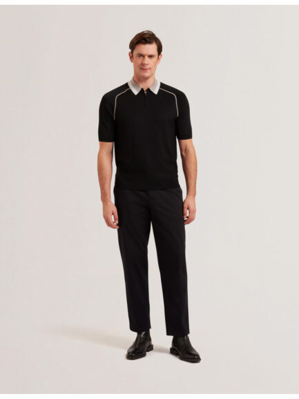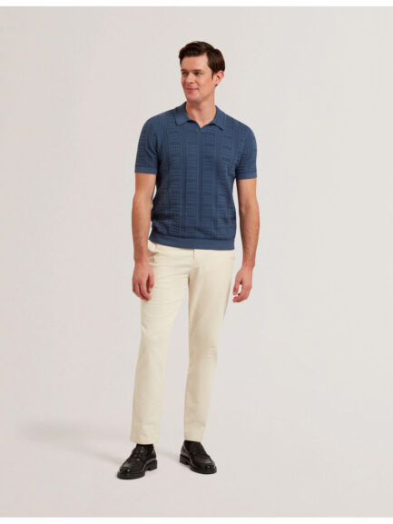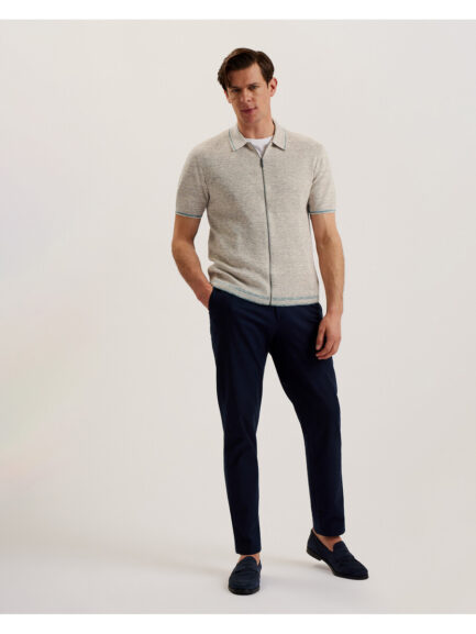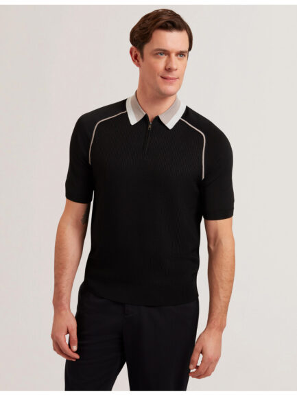 PAXTO – Teksturirana polo majica s patentnim zatvaračem i prugastim ovratnikom