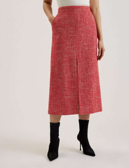 SUMIS – Krojena midi suknja od buklea s prednjim prorezom
