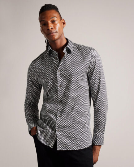 FRESTIN – Uska košulja dugih rukava s geometrijskim uzorkom