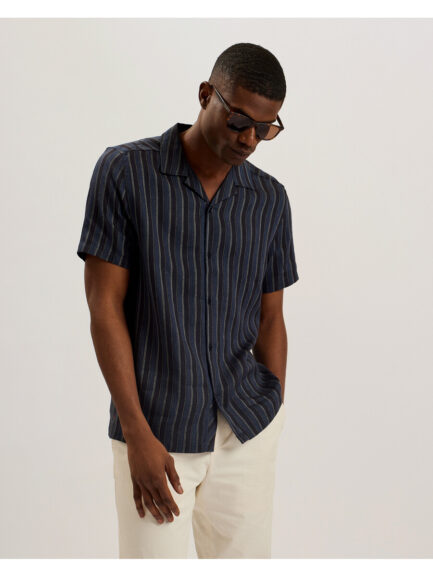 FRANCOI – Prugasta pamučno-lanena košulja kratkih rukava