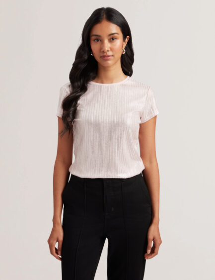 KARENHA – Mrežasti top s folijskim printom i kosim ovratnikom