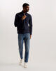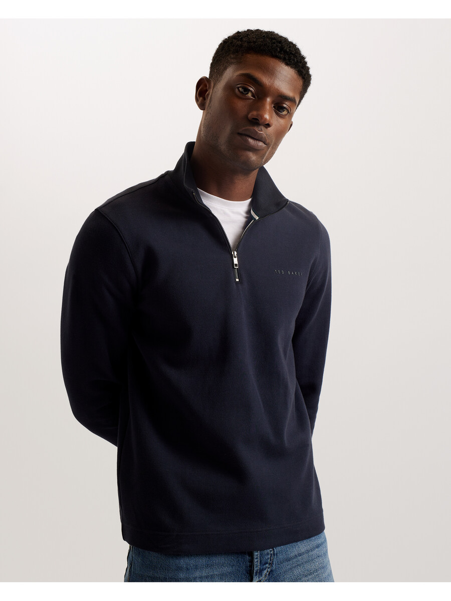 Majica s kapuljačom Rastezljiva mješavina pamuka Zatvaranje s patentnim zatvaračem Lijevkasti izrez Utisnuti logo na prsima Dugi rukavi Yahrock je visok 187 cm i nosi tamnoplavu Ted majicu veličine 3 78 % pamuk, 13 % poliester, 9 % elastan