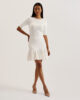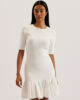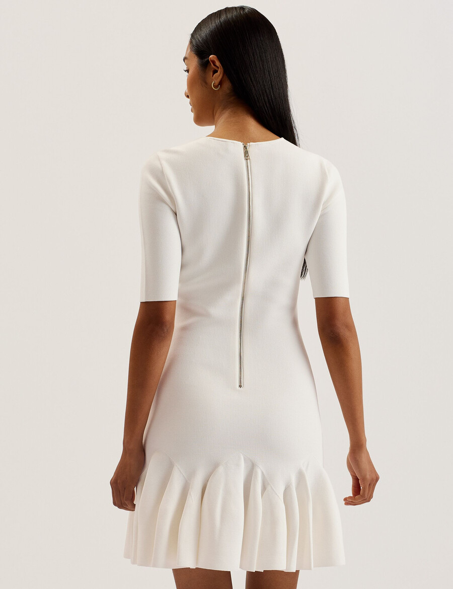 Mini haljina Uski kroj Pletena tkanina s rastezljivom tkaninom Plisirani rub Pola rukava Okrugli izrez Zatvaranje patentnim zatvaračem May je visoka 174 cm i nosi boju slonovače u Ted haljini veličine 44