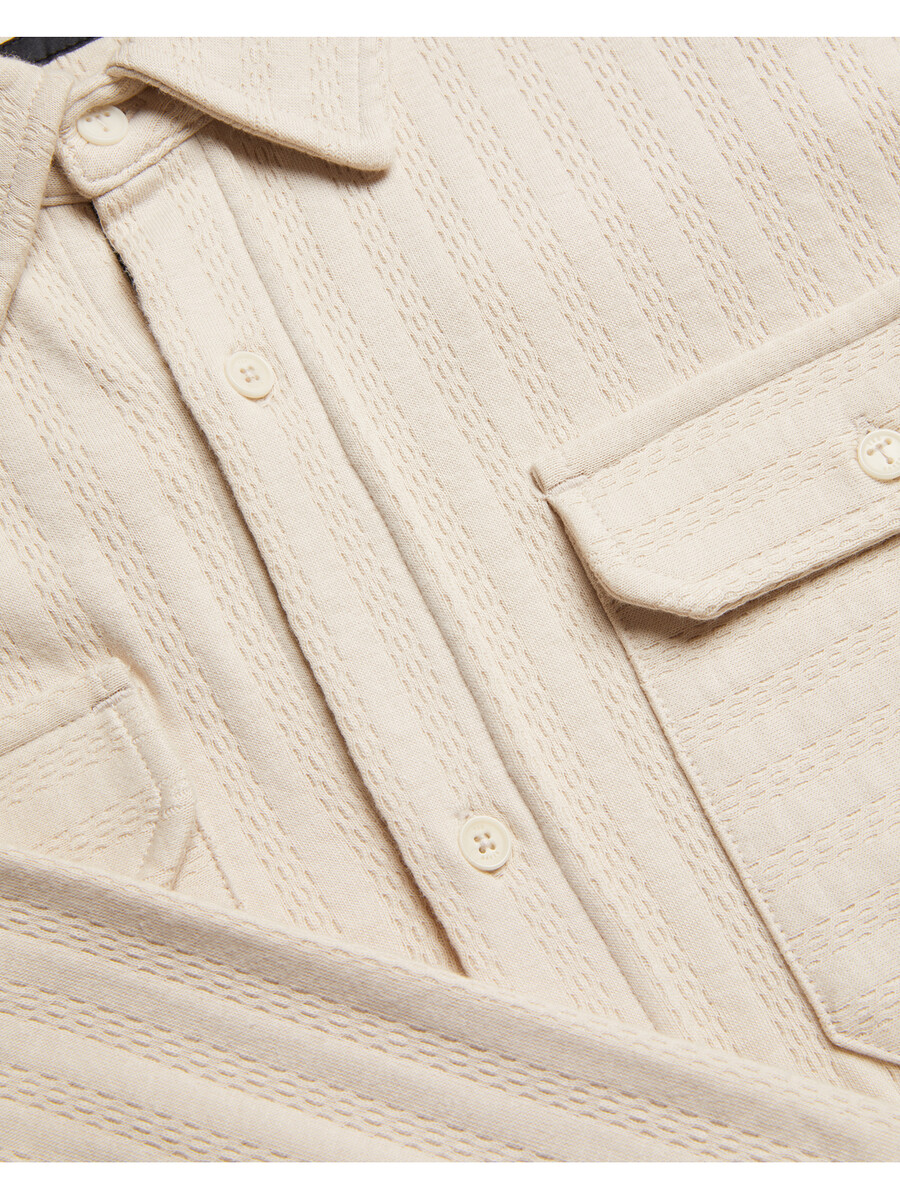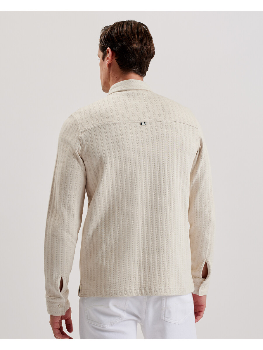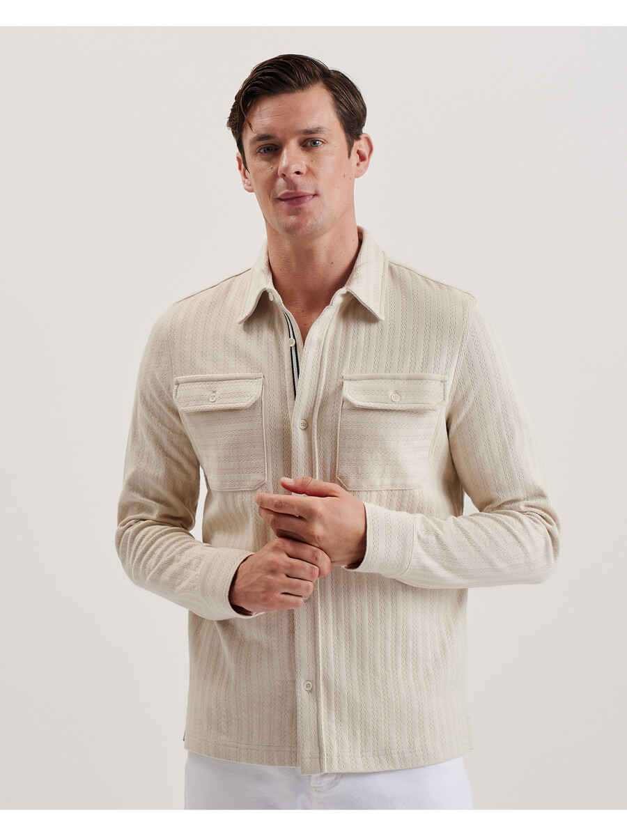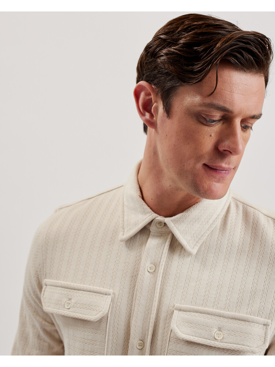 Gornja košulja Teksturirani pamuk Dva praktična džepa na prsima Kopčanje na gumbe Klasični ovratnik Regularni kroj Lewis je visok 188 cm i nosi bež Ted majicu veličine 3 100% BCI pamuk