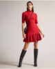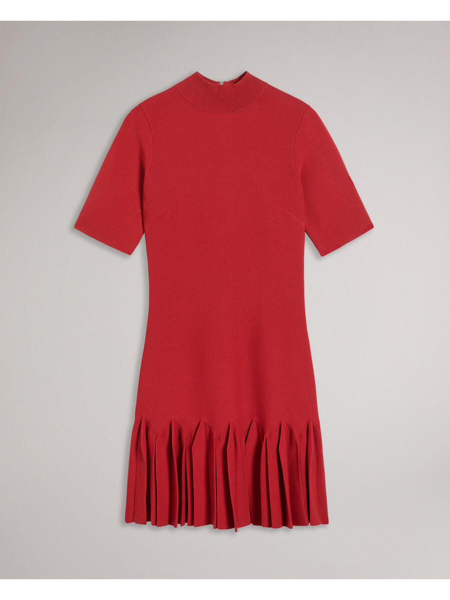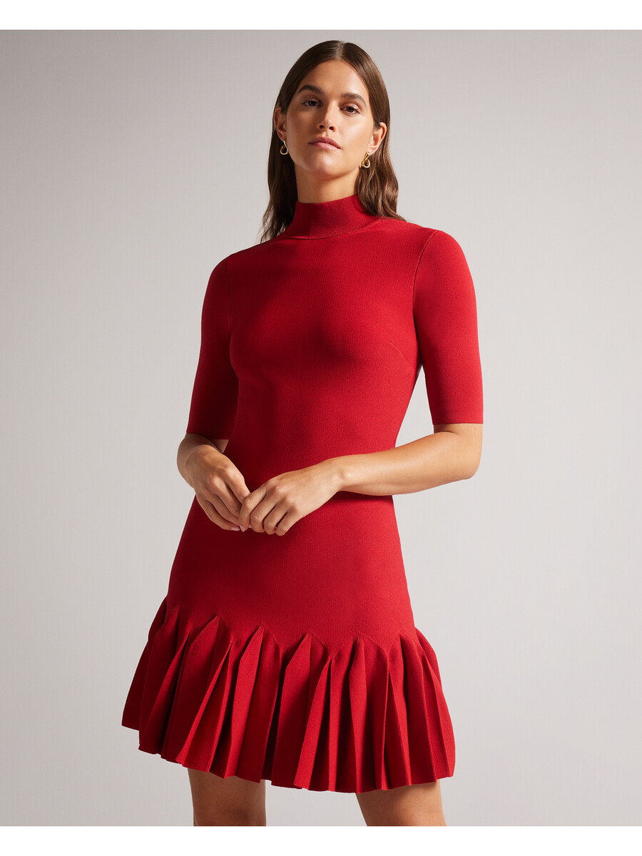 Mini haljina Rastezljiva pletena tkanina Uski kroj Plisirani rub Visoki rebrasti ovratnik Polu rukavi Zatvaranje patentnim zatvaračem Amy je visoka 177 cm i nosi crvenu boju u Ted haljini veličine 1 55% viskoza, 43% poliamid, 2% elastan Ručno pranje Peglanje s jednom točkicom Kemijsko čišćenje
