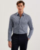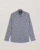 Košulja slim kroja Retro geometrijski uzorak Mješavina pamuka s rastezljivim uzorkom Klasični ovratnik Kopčanje na gumbe Dugi rukavi Lewis je visok 188 cm i nosi tamnoplavu Ted majicu veličine 3 97% pamuk, 3% elastan