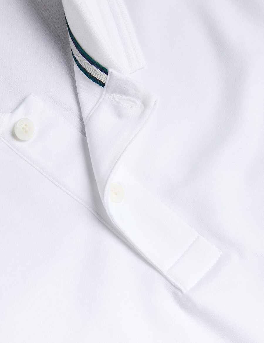 Polo majica Klasični ovratnik s rebrastim detaljem Mješavina pamuka Kopčanje na gumbe Regular kroj Kratki rukavi Lewis je visok 188 cm i nosi bijelu Ted majicu veličine 3 55% poliester, 45% pamuk Pranje u perilici rublja na 30°C, može se kemijski čistiti