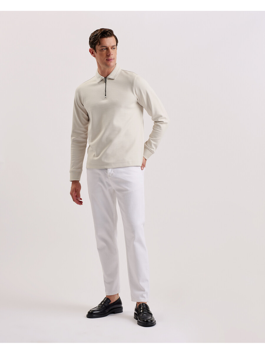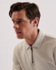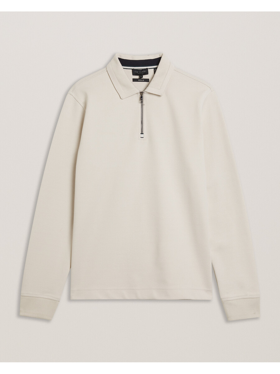 Polo majica Dugi rukavi Mješavina pamuka Zatvaranje na pola patentnog zatvarača Klasični ovratnik Regular kroj Lewis je visok 188 cm i nosi bež Ted majicu veličine 3 58% poliester, 41% pamuk, 1% elastan
