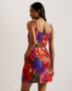 JYNEEN pristaje kao san, od laskavog uskog gornjeg dijela do suknje A-kroja. Ova mini haljina stvorena je za posebne događaje u vašem ljetnom kalendaru, s velikim cvjetnim printom koji pršti bojama i tankim naramenicama za vezanje koje dodaju slatke detalje. -Mini haljina – Veliki cvjetni print – Tanke naramenice s vezanjem – Uski gornji dio – Suknja A-kroja s džepovima – Detalj s panelima – Skriveno zatvaranje patentnim zatvaračem 100% poliester Ručno pranje. Peglati na niskoj temperaturi. Može se kemijski čistiti.