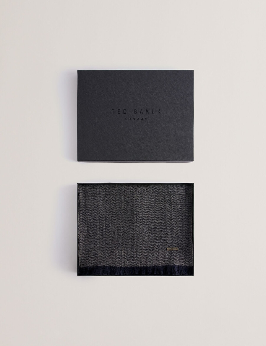 Dugi šal Tekstura riblje kosti Jednobojna poleđina Kontrastni izlizani obrub Ploča s oznakom brenda Tkana tkanina 100% akril Ručno pranje, ne kemijski čistiti
