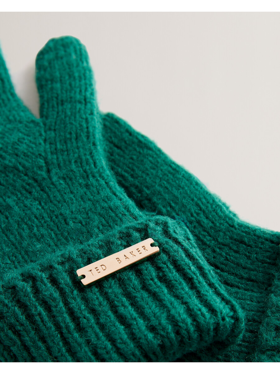 Rukavice Topla mješavina vune Pletenje s rebrastom teksturom Gravirana pločica s metalnim dijelovima Podignuta manžeta 54% akril, 41% poliester, 5% vuna Ne prati, ne peglati, ne kemijski čistiti