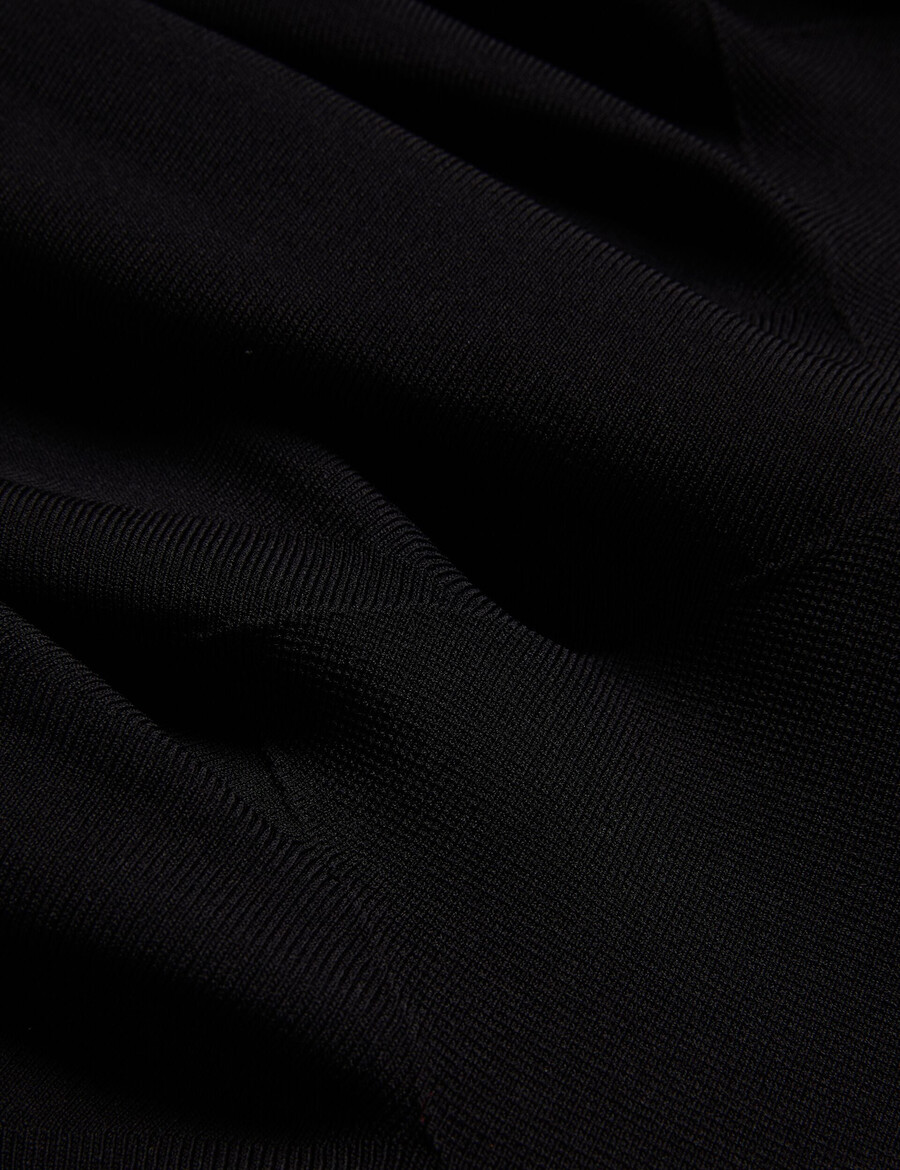 Mini haljina Volančasti rub Rastezljiva pletena tkanina Uski kroj Dugi rukavi Okrugli izrez Zatvaranje patentnim zatvaračem Amy je visoka 177 cm i nosi crnu boju u Ted haljini veličine 1 Sastav: 52% viskoza, 45% poliamid, 3% elastan Ručno pranje, glačanje na hladno, Može se kemijski čistiti