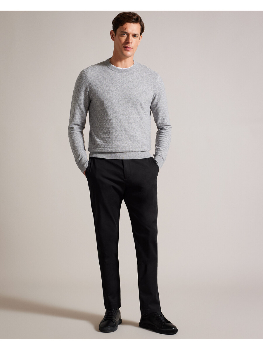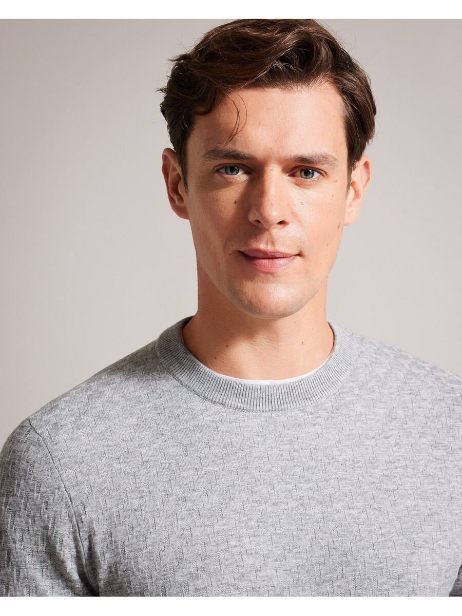 Džemper dugih rukava Pletenina od mješavine vune Teksturirani T uzorak Okrugli izrez Rebrasti rubovi Lewis je visok 188 cm i nosi sivi melange u Ted majici veličine 3 32% poliester, 31% poliamid, 28% akril, 7% vuna, 2% elastan Pranje u perilici rublja na 30°C, ne kemijski čistiti