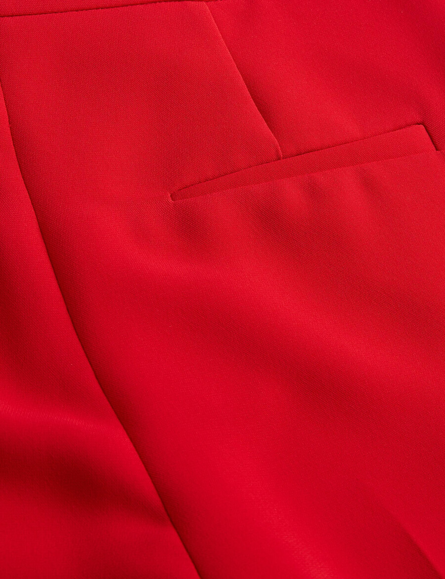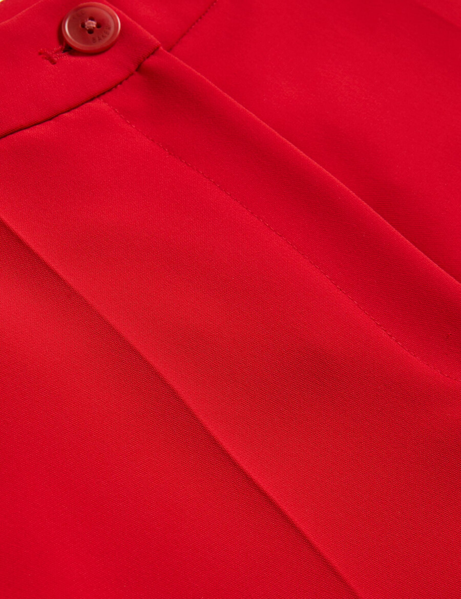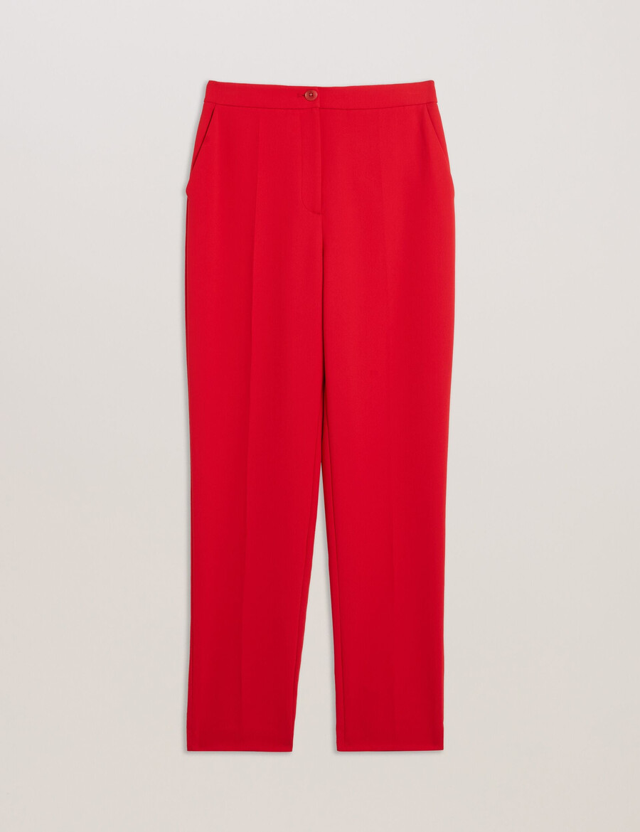 Hlače krojene po mjeri Suženi model Visoki struk Kopčanje na patentni zatvarač i gumbe Prednji džepovi Dekorativni stražnji džepovi Jednostruki nabor na nogavici Chae je visoka 177 cm i nosi Ted veličinu 1 Materijal: 100% poliester; Podstava: 100% poliester
