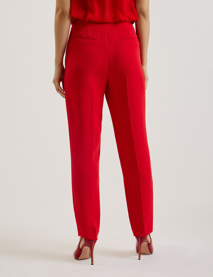Hlače krojene po mjeri Suženi model Visoki struk Kopčanje na patentni zatvarač i gumbe Prednji džepovi Dekorativni stražnji džepovi Jednostruki nabor na nogavici Chae je visoka 177 cm i nosi Ted veličinu 1 Materijal: 100% poliester; Podstava: 100% poliester