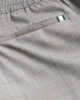 Hlače krojene s uzorkom princa od Walesa, uski kroj, elastičan pojas, džepovi sa strane i straga, kopčanje na gumbe i patentni zatvarač, Lewis je visok 188 cm i nosi majicu širine 81 cm. Materijal: 64% poliester, 34% viskoza, 2% elastan; džep: 100% pamuk