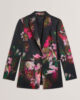 Krojena jakna Cvjetni print po cijeloj površini Pripijena silueta Kopčanje s jednim gumbom Šiljasti reveri Opuštena ramena Prednji džepovi May je visoka 174 cm i nosi Ted veličinu 1 Materijal: 100% poliester; Podstava: 96% poliester, 4% elastan; Podstava rukava: 94% poliester, 6% elastan Samo kemijsko čišćenje, toplo glačanje