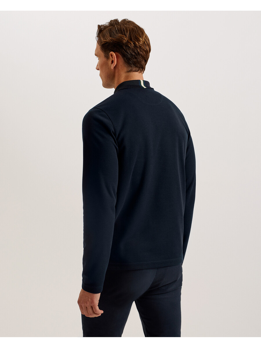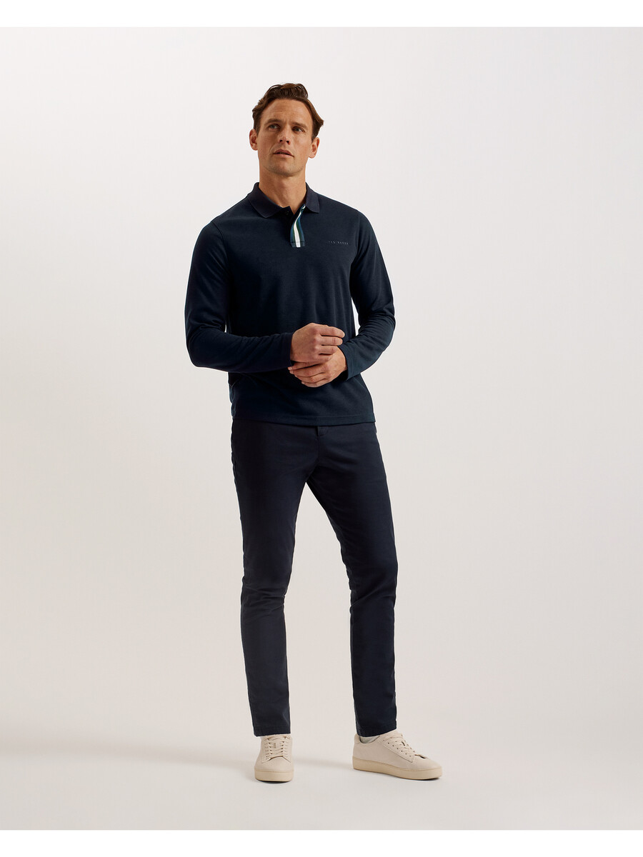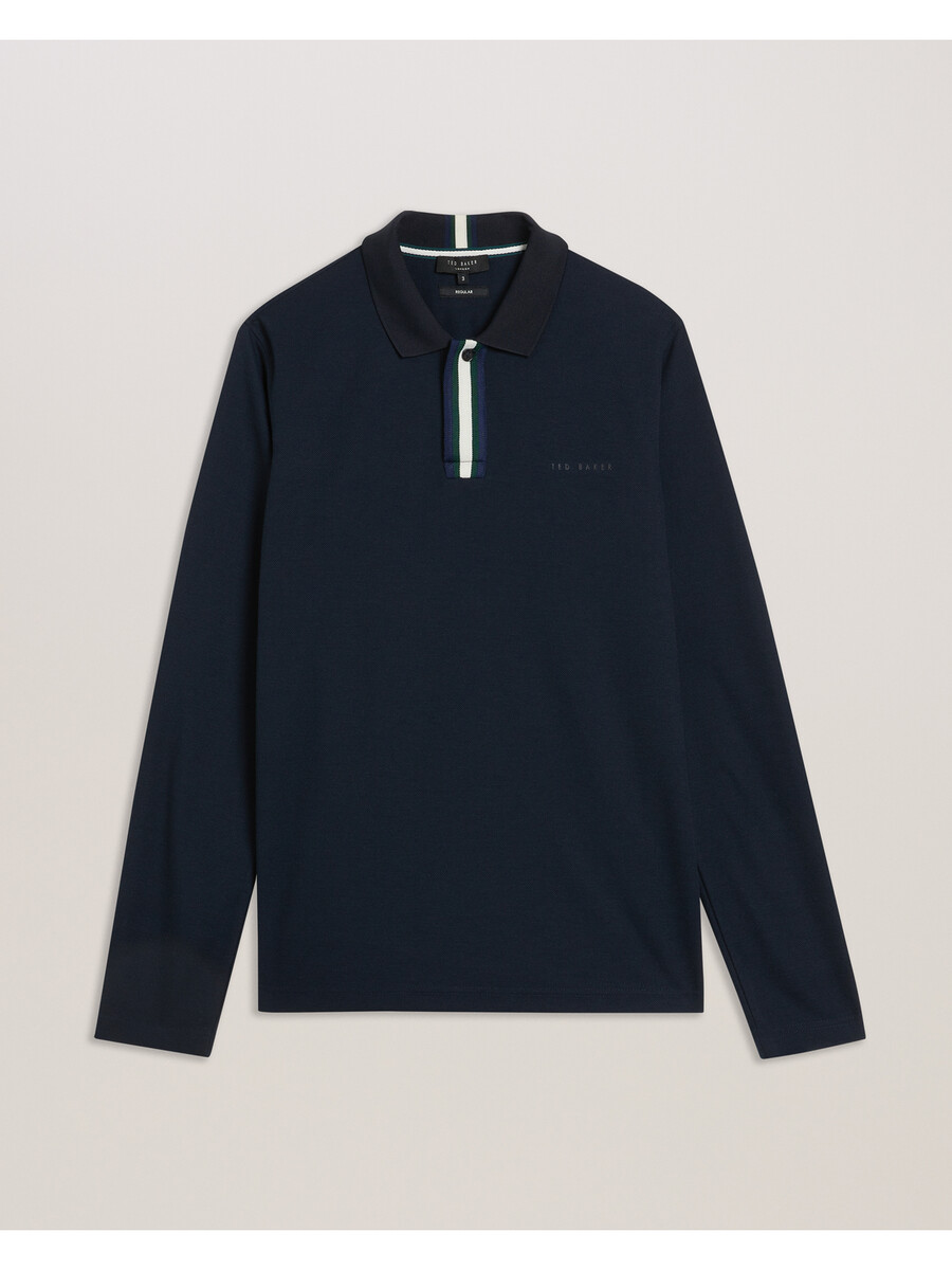 Polo majica dugih rukava Utisnuti logo na prsima Prugasti razrez s Glasgow uzorkom Klasični ovratnik Kopčanje na gumbe Regular kroj Muškarac je visok 187 cm i nosi Ted veličinu 3 100% poliester