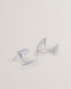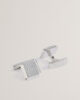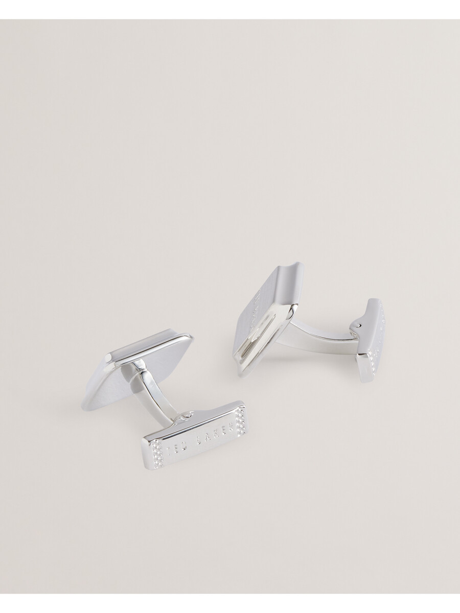 Kvadratne manžete Ugravirani logo Sjajna srebrna prevlaka Zatvaranje na šarke 86% mesing, 10% legura cinka, 3% nehrđajući čelik, 1% srebrna prevlaka. Ne prati, ne peglati, ne kemijski čistiti.